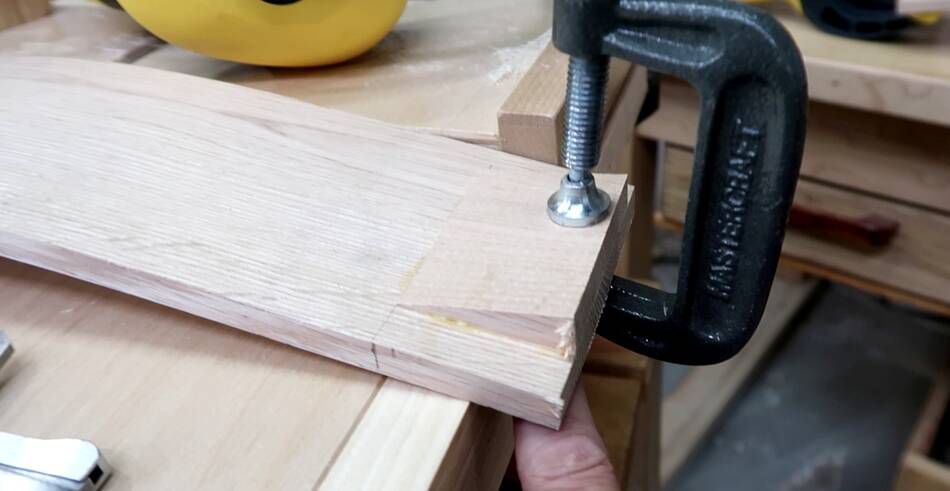 So I put a C-clamp on the opposite end. The C-clamp bumps up against the table and