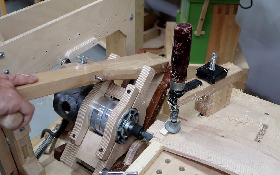 Finally I was able to cut the first tenon. Though, as I cut it, the hold-down