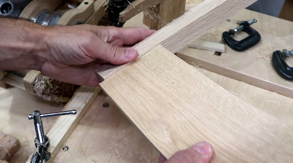ended up level on the table, then clamped it down and started cutting the tenon.