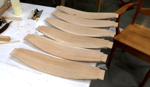 Thirteen years earlier I made some back rungs by cutting them out of a larger piece like my dad always did. That certainly was more straightforward, but that presents challenges of its own too.