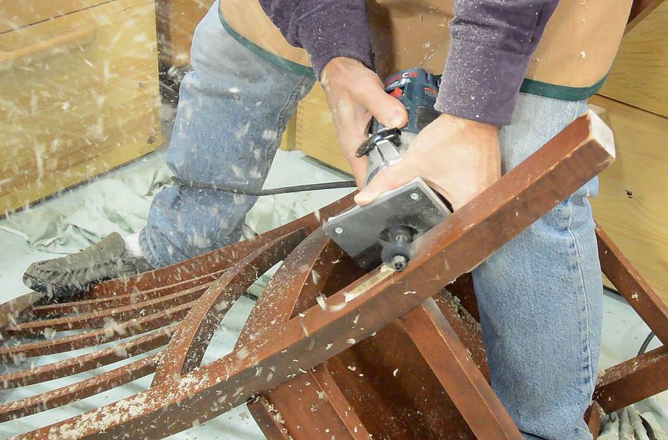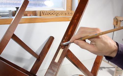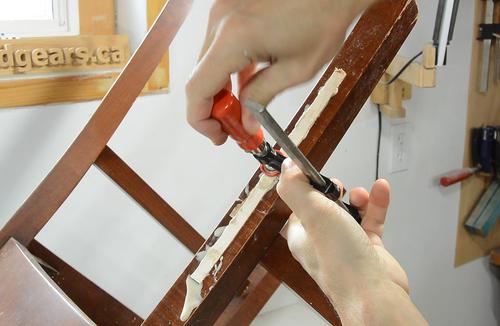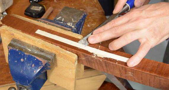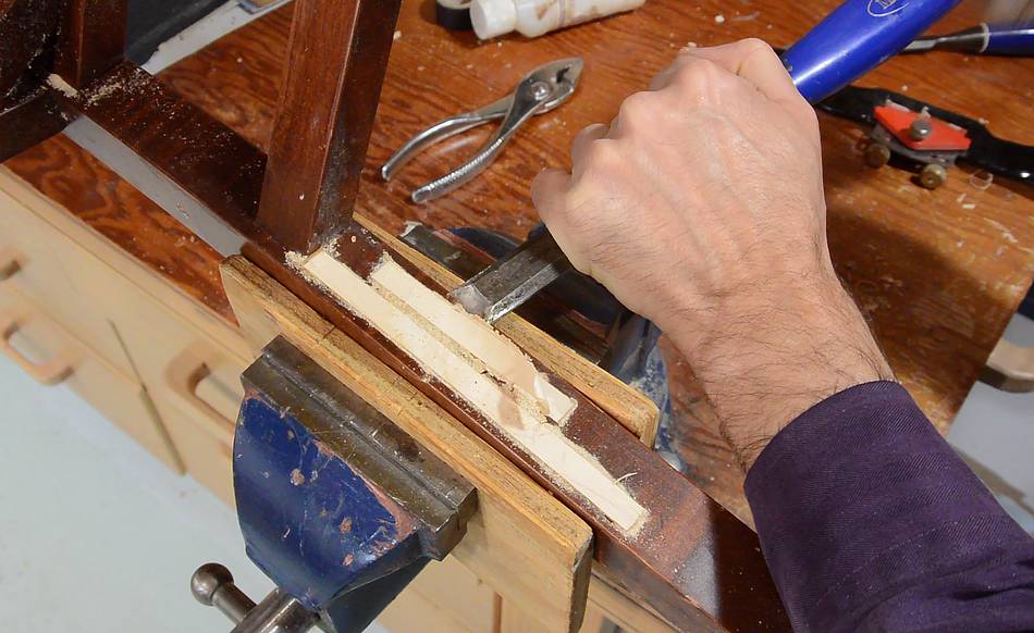 started chiseling the inlays level with the chair leg.