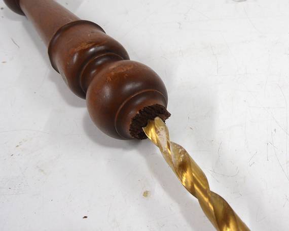 The problem with this chair is that the legs are turned down too thin, creating a weak spot. Even if I fixed it good as new, it still wouldn't be very good. Initially I promised only to try gluing it back together, but then I had an idea for reinforcing it with a steel pin.