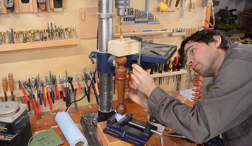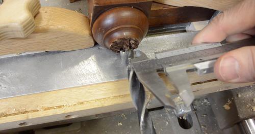 Then checking the offset of the hole in the leg and lining up the drill