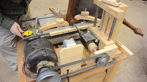 I don't use the horizontal boring machine very much. In part because setting stuff up on it takes longer than using a drill press, but also because it's a type of machine few people have. I can't encourage you to build one because this one relies on parts that I have no idea where they could be bought. It uses an old X-Y mill/drill table and a bearing block/drill chuck assembly. The table came from a surplus sale, the bearing block was given to me.