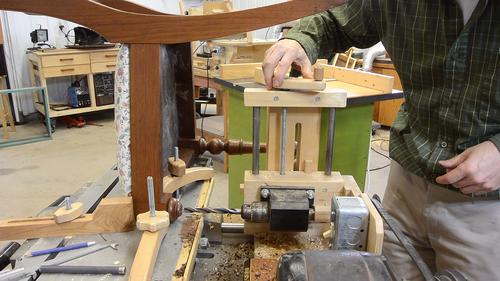 So I clamped the chair back on the machine, adjusted the drill position,