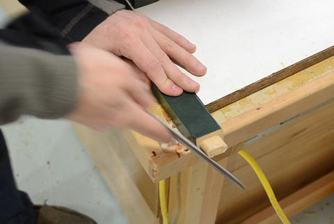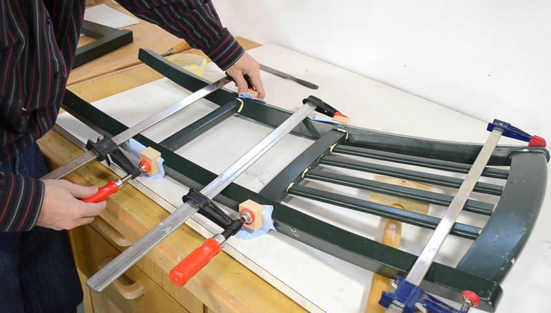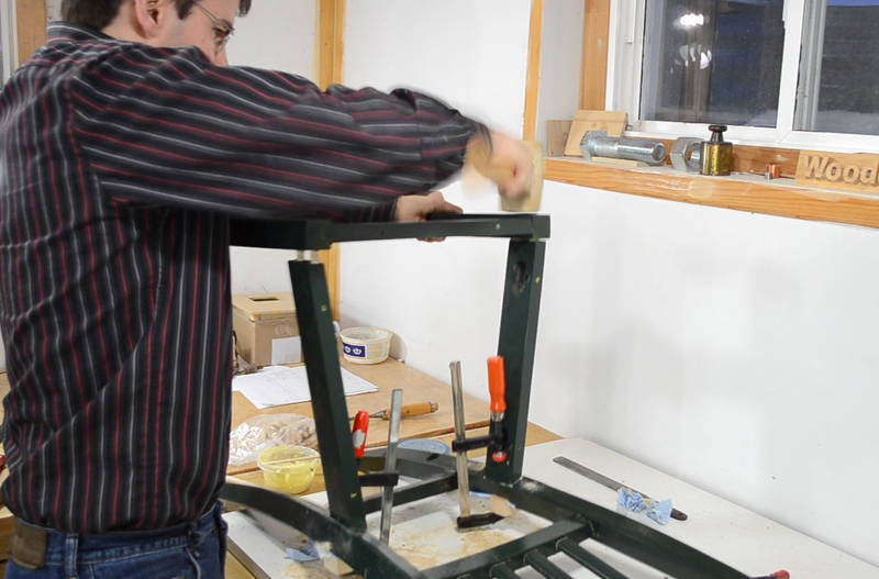 With the back assembled, time to clean up the glue squeeze out with sawdust.