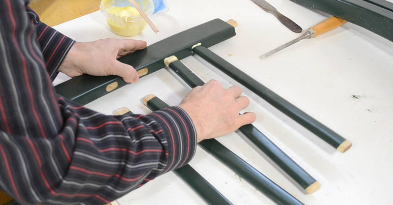 Looking at the joints, it looks like the dowels were inserted, and then the