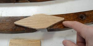 The patch is deliberately about 1 mm thicker than the wood. I figure a bit of extra wood will make it stronger.