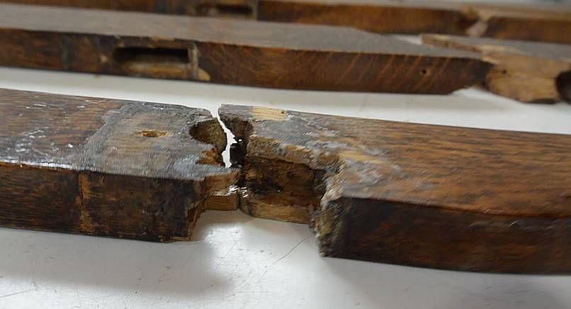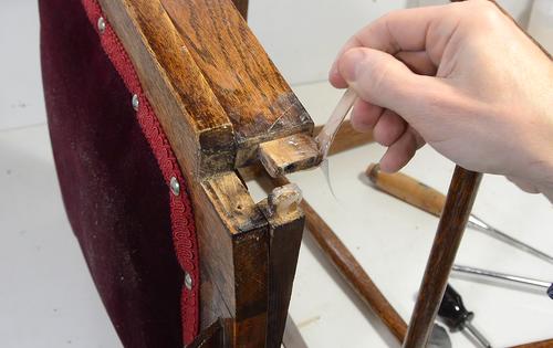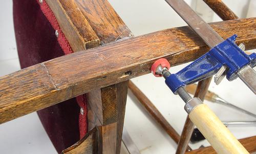 Many of the chair's joints had been re-glued with epoxy repeatedly.