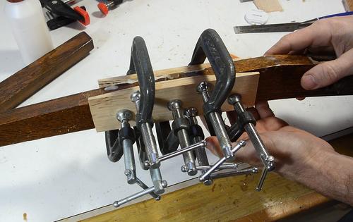 This meant I had to wait for the glue to dry. But it turns out, the fit wasn't perfect, and I didn't use enough glue or wait long enough. So it came apart when I took it out and started working on it. But the second time I glued it I used more glue, more clamps, and let it dry longer.