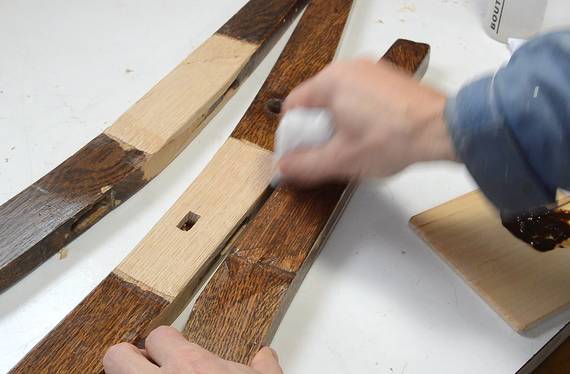 The colour came out surprisingly similar considering I wasn't even using the same type of oak for my patches. I then put two coats of water borne varnish on top of that to give it a shine like the rest of the finish.
