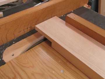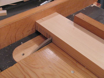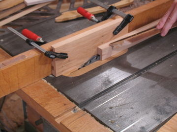 Next, cut the trim pieces on the table saw (Fig 27). It may help to run the piece thru more than once if you have any doubt as to whether it was in full contact with the fence and table along its whole length. The advantage of cutting the corner out this way is that any slippage will result in less material being cut, so running it across the saw again will fix the problem.