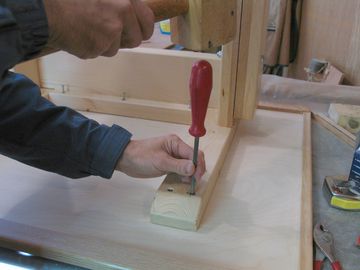 Insert the screws, then lightly tap them into the table by tapping the handle of the screwdriver with a mallet. (Fig 31)