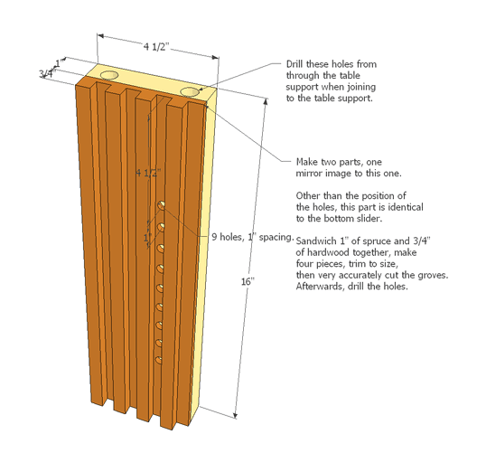 ![]() The telescoping leg parts are four identical parts, with exception of where the holes are drilled.