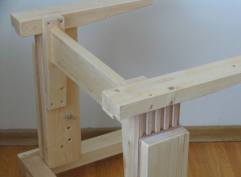 for side-to-side stability of the desk. The cross beam is mortised into the vertical parts
