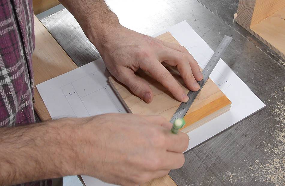 Rather than glue the template to the wood, I'm transferring the measurements with a ruler and pencil.