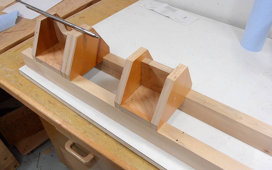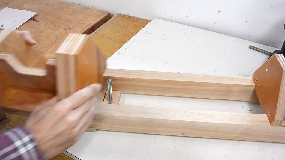 Longer pieces of hardwood will form the bed of the lathe. I'm
