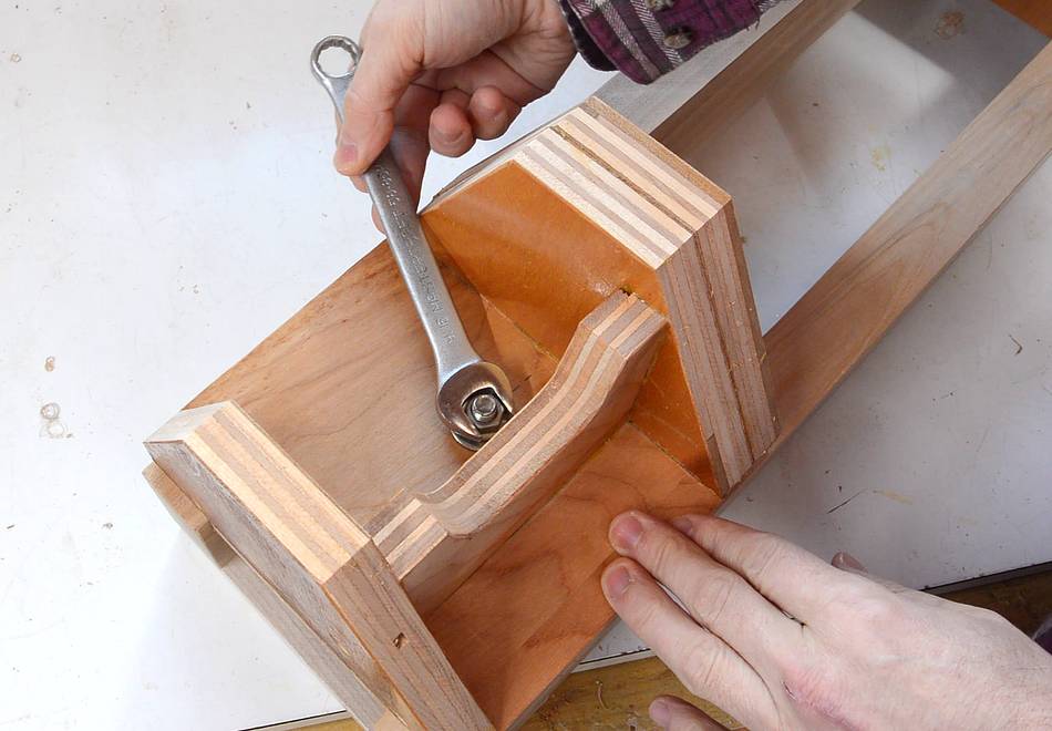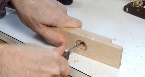 I'm using a knife to square part of the hole for the carriage bolt.