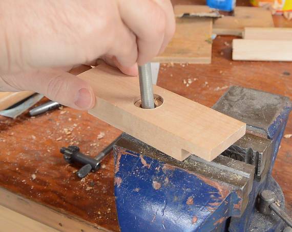 headstock. I made these by drilling some holes in from the end grain in