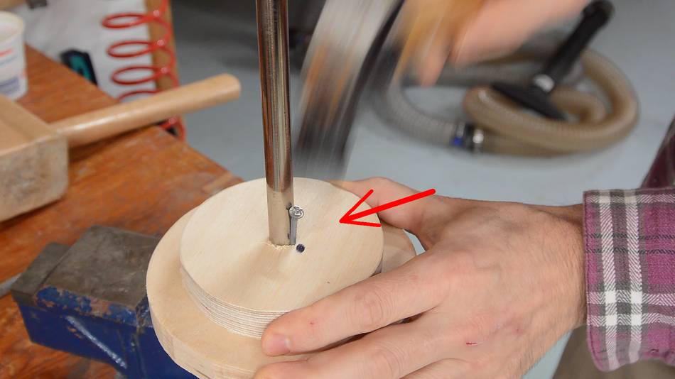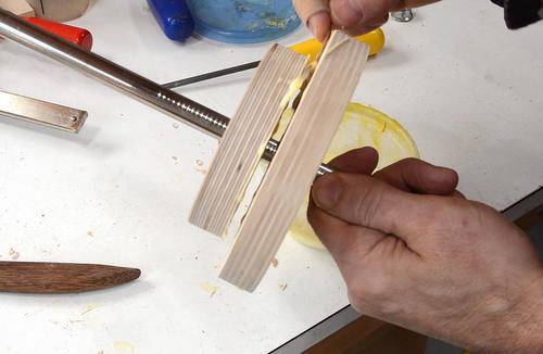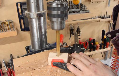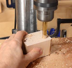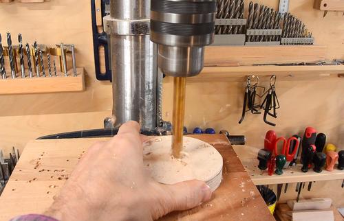 I then drill a hole just a bit larger than the shaft I will use.