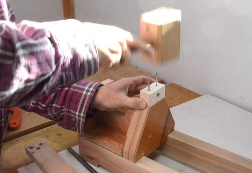 After that, I drive a nail in the space provided by the key ways on