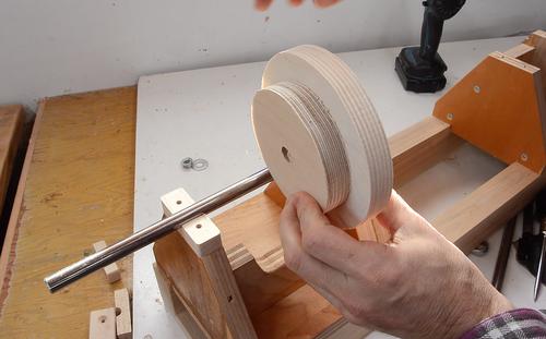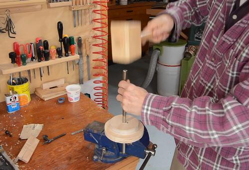 Inserting the shaft. It's deliberately a tight fit. I needed to drive