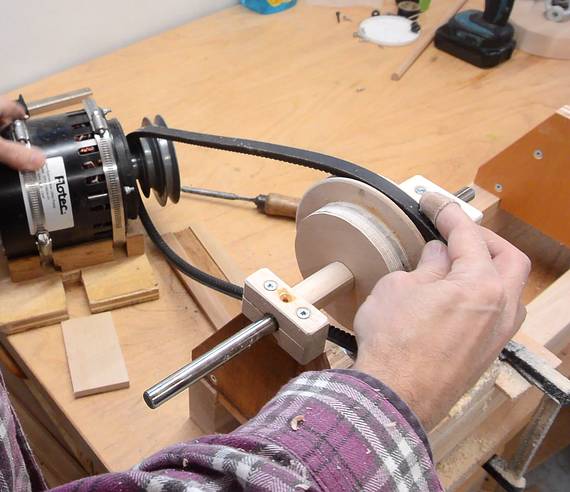 that, and then turned the V-groove in the small pulley.