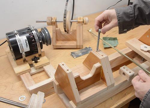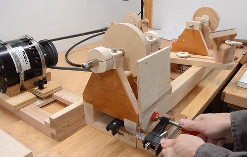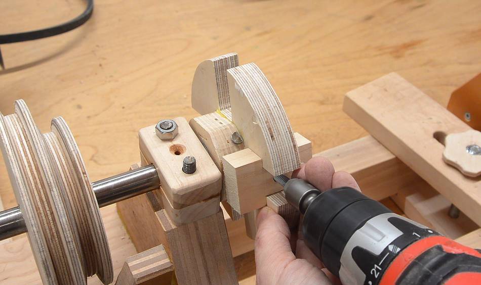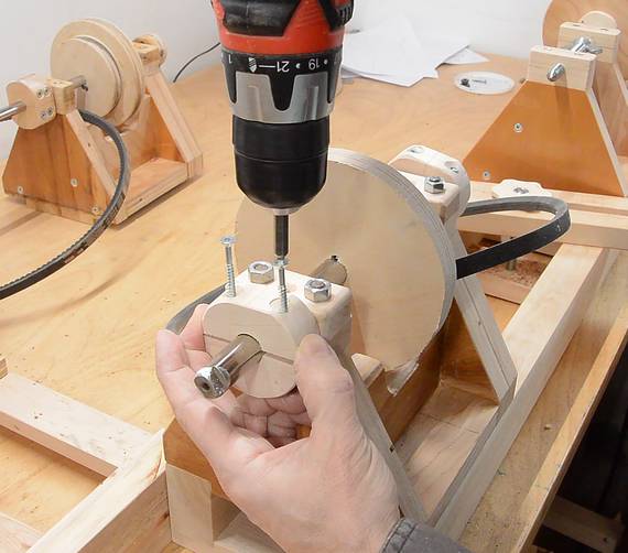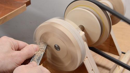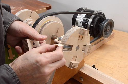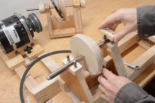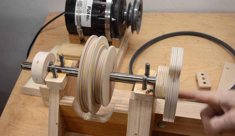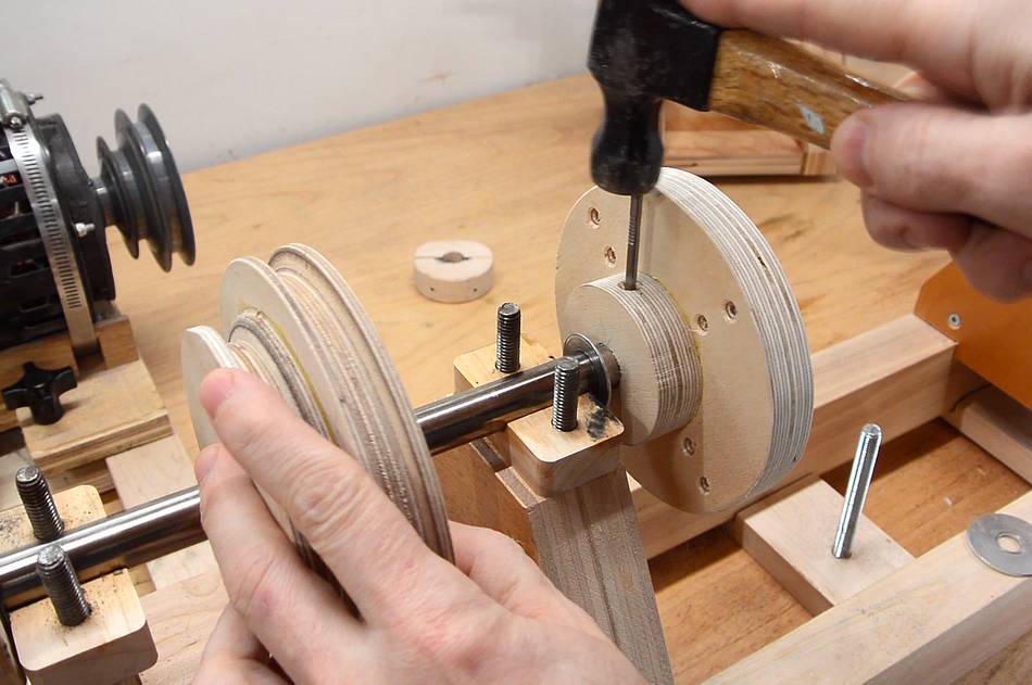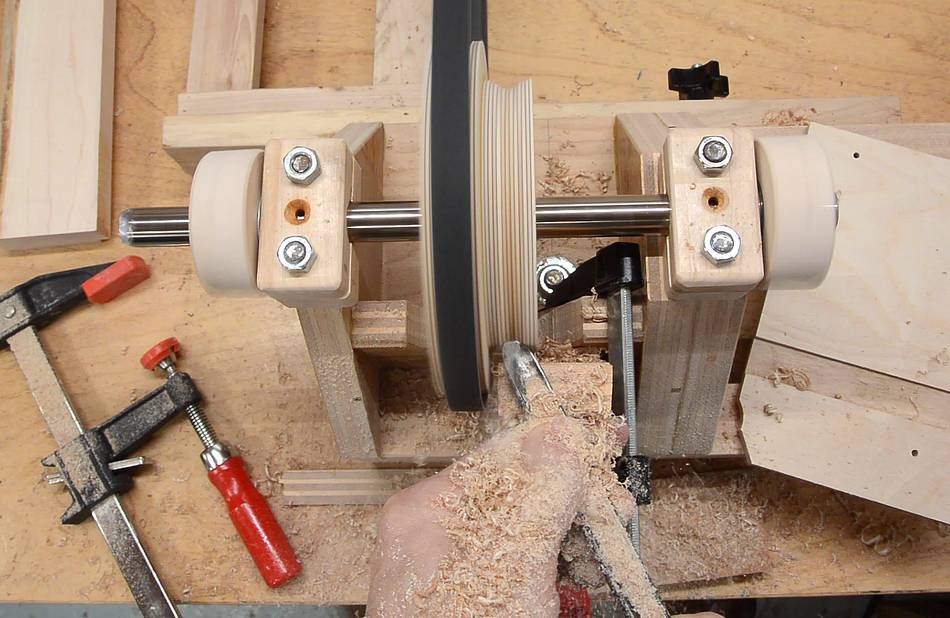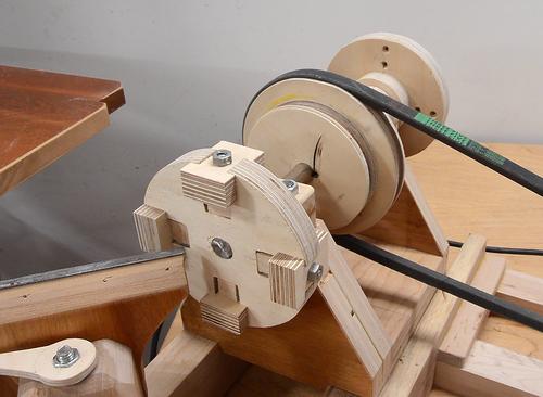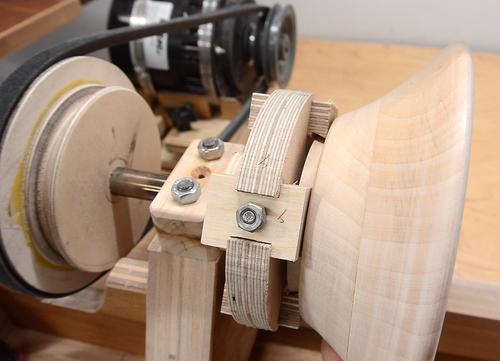 first riding on the unshaped lower step pulley. I had to make some blocks
