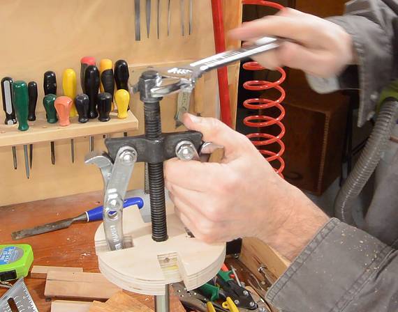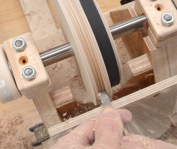 I drilled a series of holes around the disk for screwing a workpiece on.