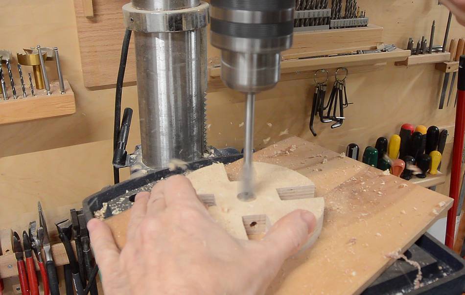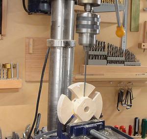 Here drilling the holes, 17/64" in size to provide a tiny bit of clearance