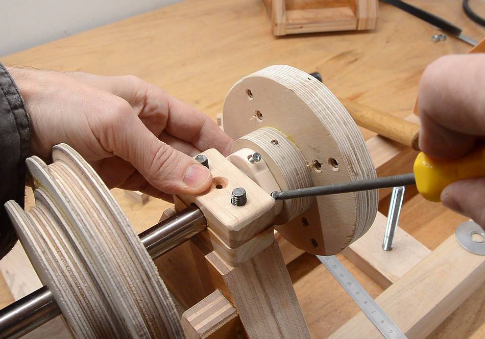 Manually spinning it on the headstock to check for wobble. I got lucky, and