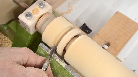 Workpiece turned round. Unfortunately, it has a bit of rot in it (or as some