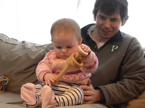 She's not quite at the age of banging things against hard surfaces yet. She examined it
