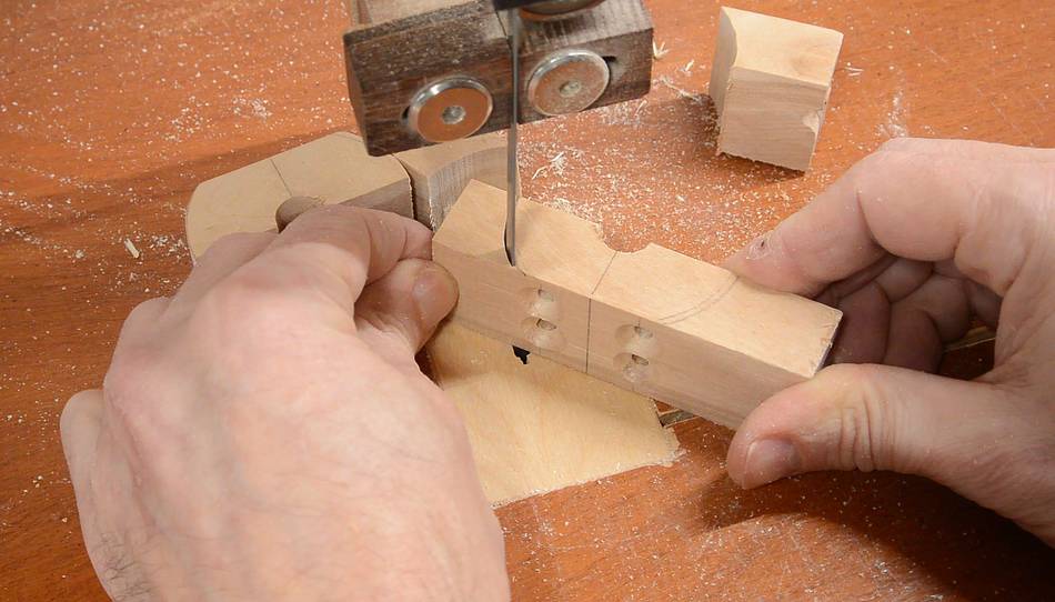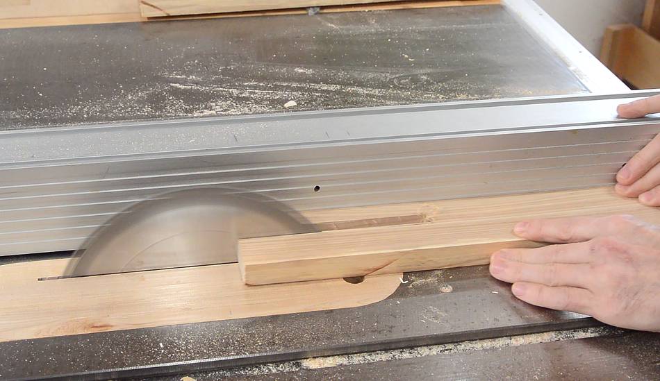a series of cuts on the table saw to cut a sort of "open mortise" (like