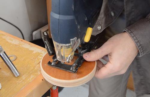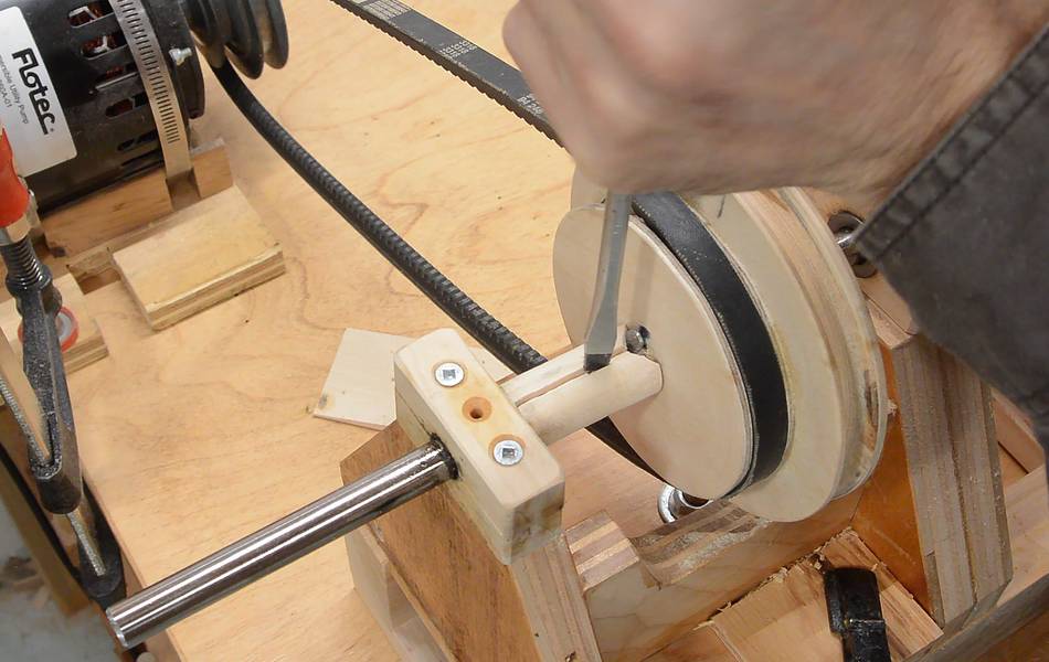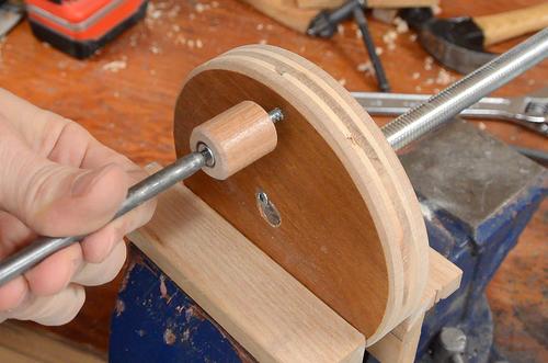 I also screwed a short piece of dowel onto the disk to act as a crank handle.