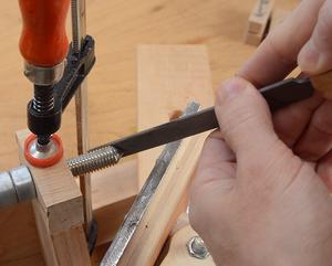 The sharp edges of the keyway were ideal for cutting a thread in the blocks