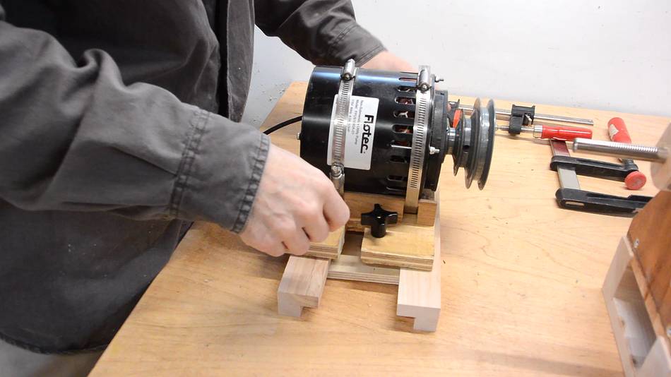 But with the motor fixed to the lathe, the V-belt can only shake itself. The V-belt is much lighter than the motor, so it causes much less vibration in the lathe as a whole.