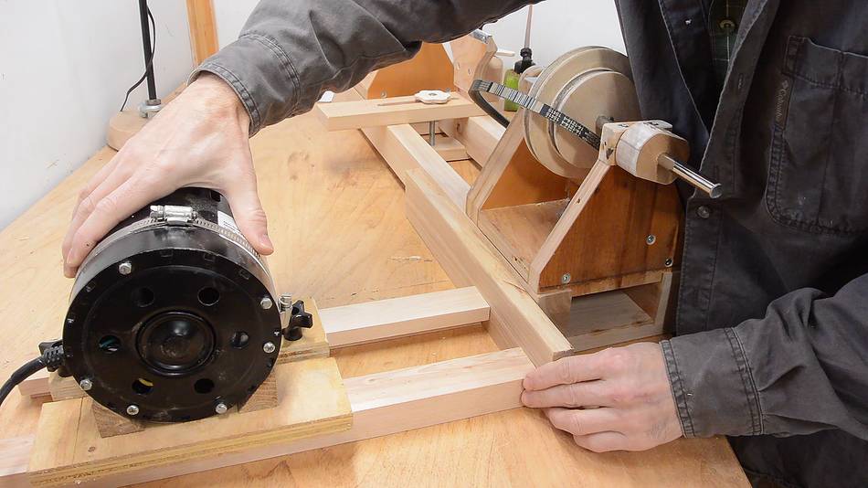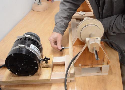 The belt I'm using is perhaps a bit long for the job, but the advantage is that it keeps the motor further away from the shavings coming off the lathe.