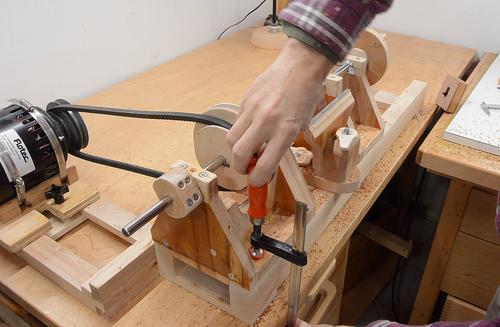 Before I made a motor mount, I clamped both the motor and the lathe to the workbench
