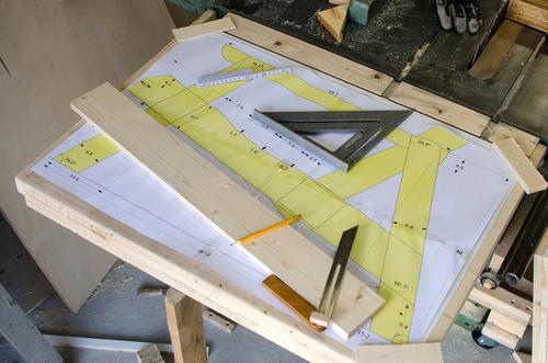 surplus construction lumber and leftover panels and whatnot. Excuse