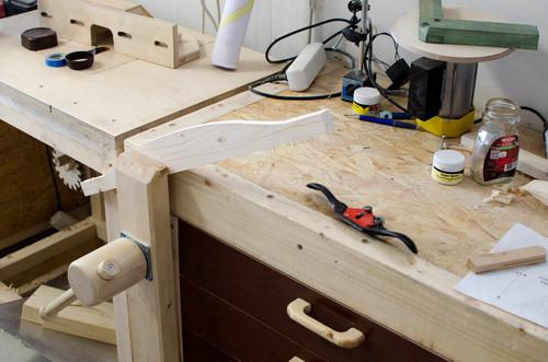 wooden bandsaw to it (added lower enclosure to keep dust in, raised