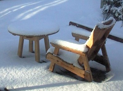 I built a small table to go with the lawn chairs. It's a low table, a little bit