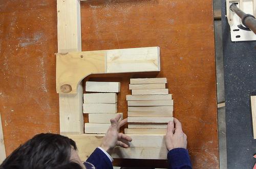 So I made a whole bunch of triangular wood braces to glue to the bottom of