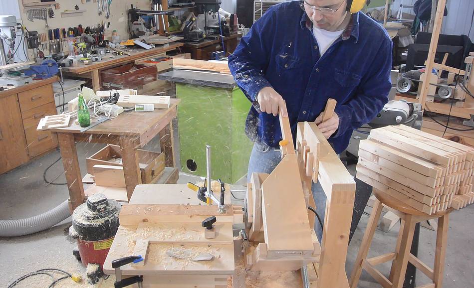 Cutting the slots for triple mortise and tenon joints in the uprights