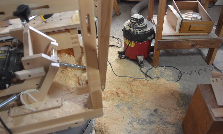 The pantorouter kicks up a lot of dust, especially when cutting tenons. I set up a fan to the right of it to blow it away from me. That worked out pretty well.