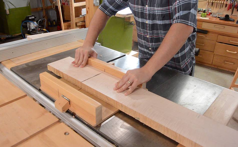 and bottom pieces using a table saw sled. The table saw sled makes this sort