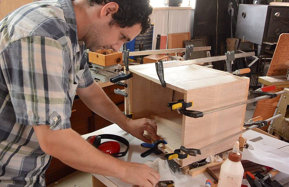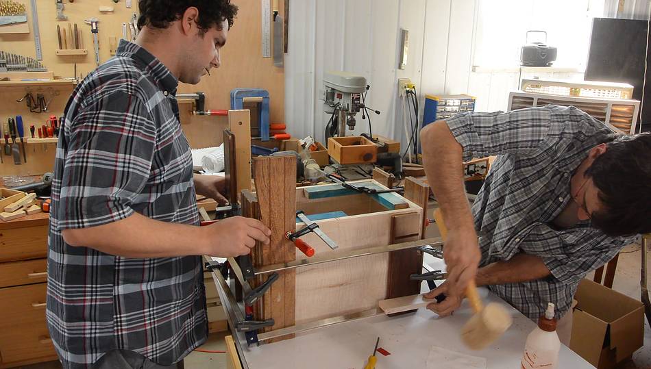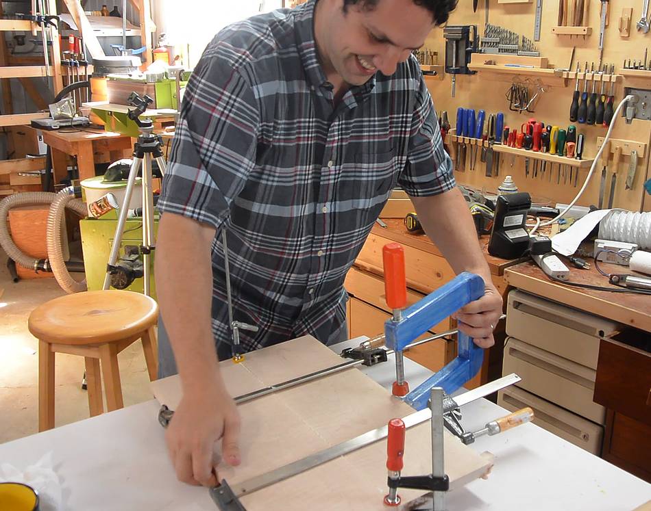 Paul gluing up the panels side-by-side to get sufficient width.