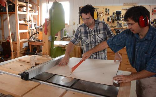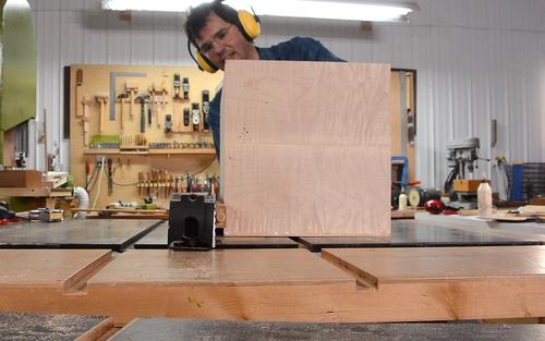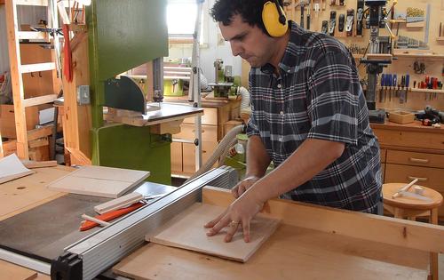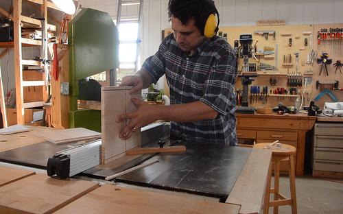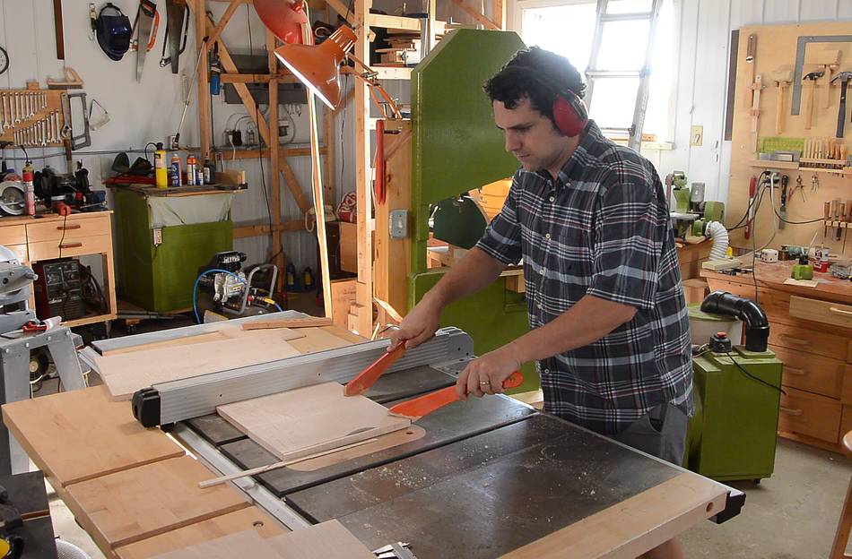 Cutting the pieces to final width. Paul encountered some burning because of