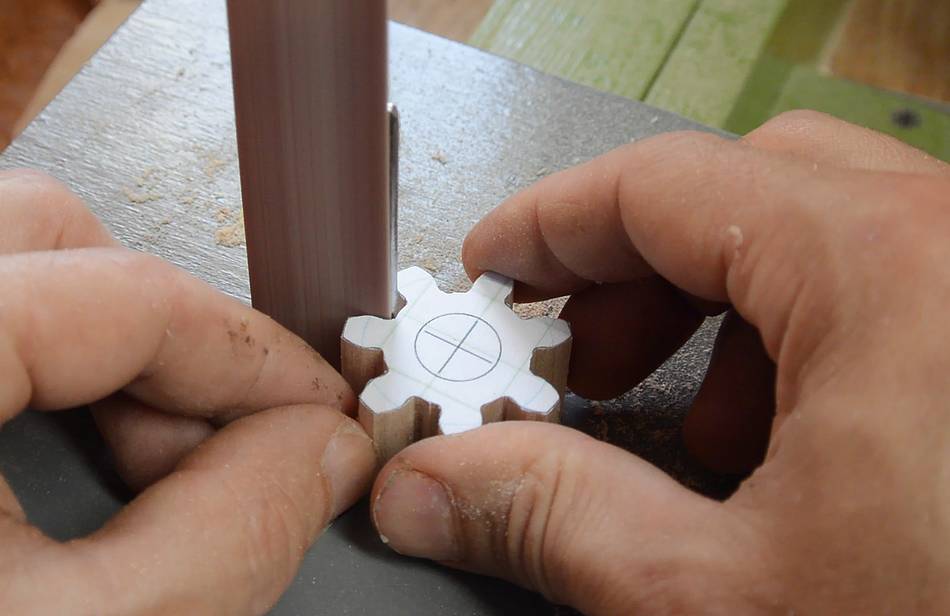 a small square piece of wood, this would make a 12-sided "dowel"). Again