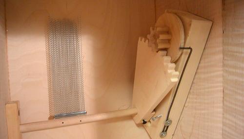 Mechanism in the cajon. The piece of coat hanger wire that pushes against the circle